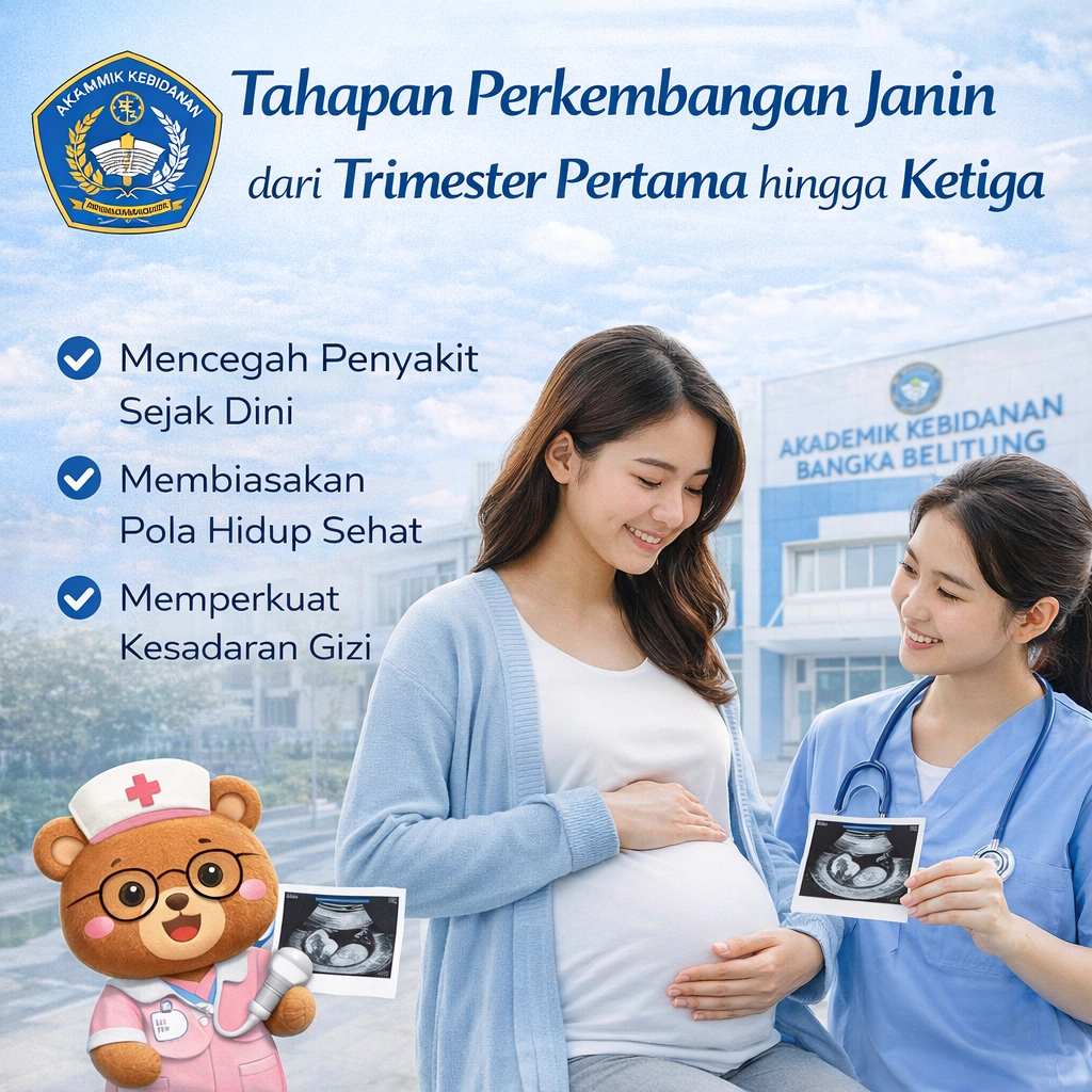 Perkembangan janin merupakan proses yang sangat kompleks dan terjadi secara bertahap selama masa kehamilan. Setiap trimester memiliki karakteristik perkembangan yang berbeda, mulai dari pembentukan organ hingga penyempurnaan fungsi tubuh janin. Akademi Kebidanan Bangka Belitung menekankan pentingnya pemahaman ibu hamil terhadap proses ini guna mendukung kehamilan yang sehat.